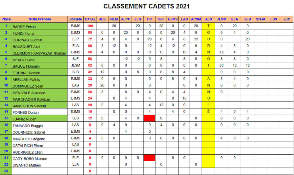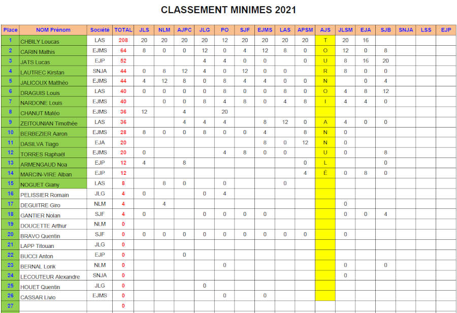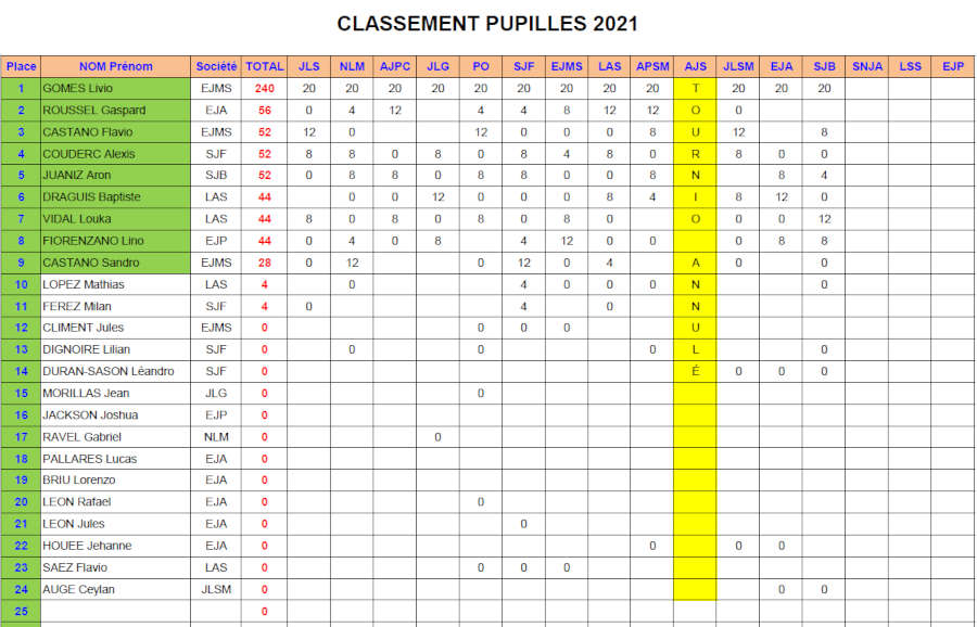 Voici les classements (provisoires) du championnat de ligue 2021 arrêtés au 21 08 2021 (surlignés en vert, les qualifiés pour les championnats de France, le classement définitif sera établi après le dernier tournoi) :