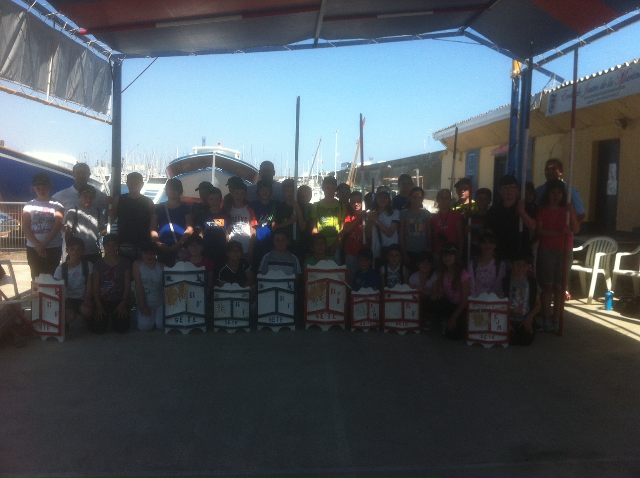 Les enfants de l’école Providence de Saugues, en Gévaudan, en classe verte à Sète, sont venus découvrir les joutes languedociennes à l’école de joutes de la Marine.