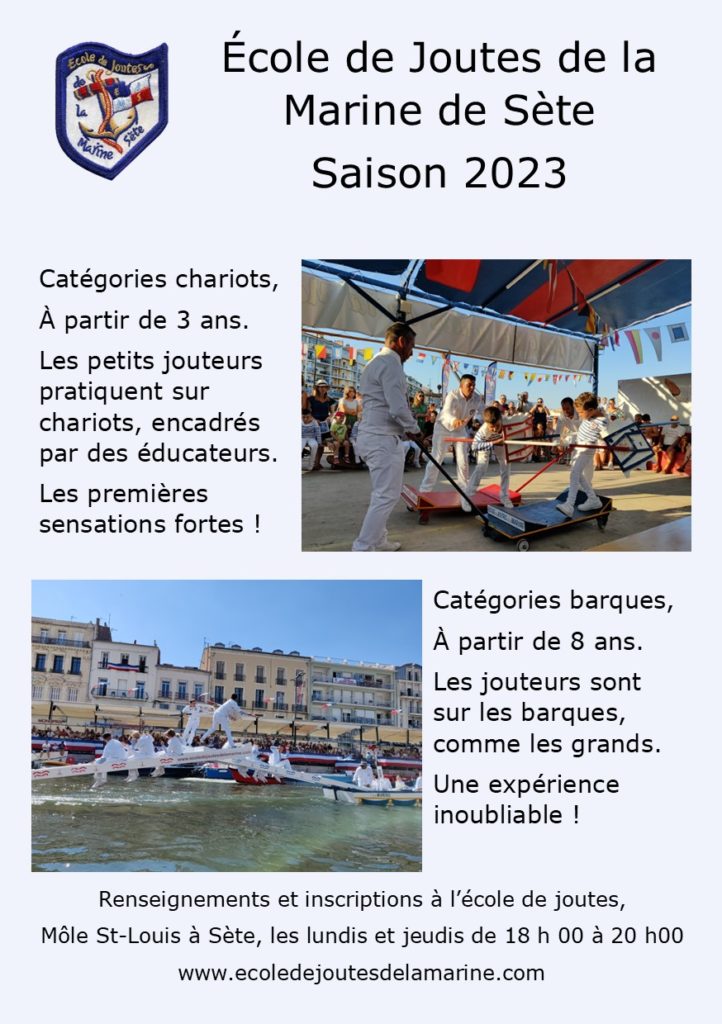 L’école de joutes de la Marine de Sète organise sa ‘Journée des Copains’ le lundi 22 mai à 18 h 00.